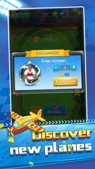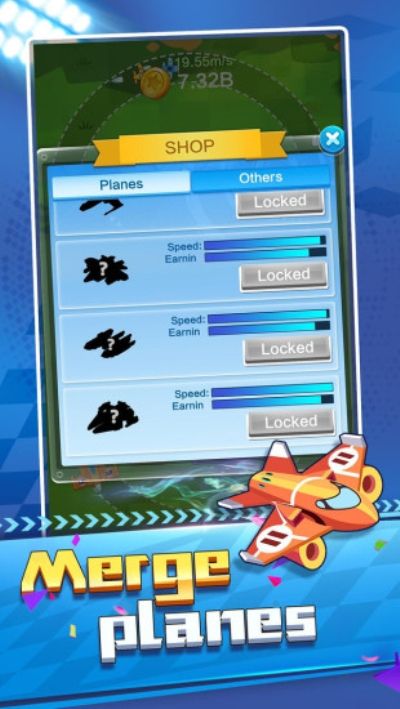 购买,合成升级和管理您的飞机。 让他们飞来赚钱!