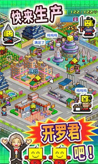这是一款关于多彩多样的宇宙生活的游戏。Kairosoft的吉祥物“开罗君”在这里将精力充沛,说不定还会爆炸哦…… 警卫队的殖民卫星上会收到来自各星球的委托,其中包括驱赶怪物或是担任保镖等等。量产拥有人工智能的量产型8位机器人“开罗君”,做好战斗的准备吧。战斗中不仅会出现怪物,还会遇见可爱的动物。成功捕获的话就能和它们一起在殖民卫星上快乐地生活了。建造礼品店和宇宙动物园后,参观者便会前来游玩。说不定无意中还能以最新科技打动行星上的原始居民,使他们进化呢。