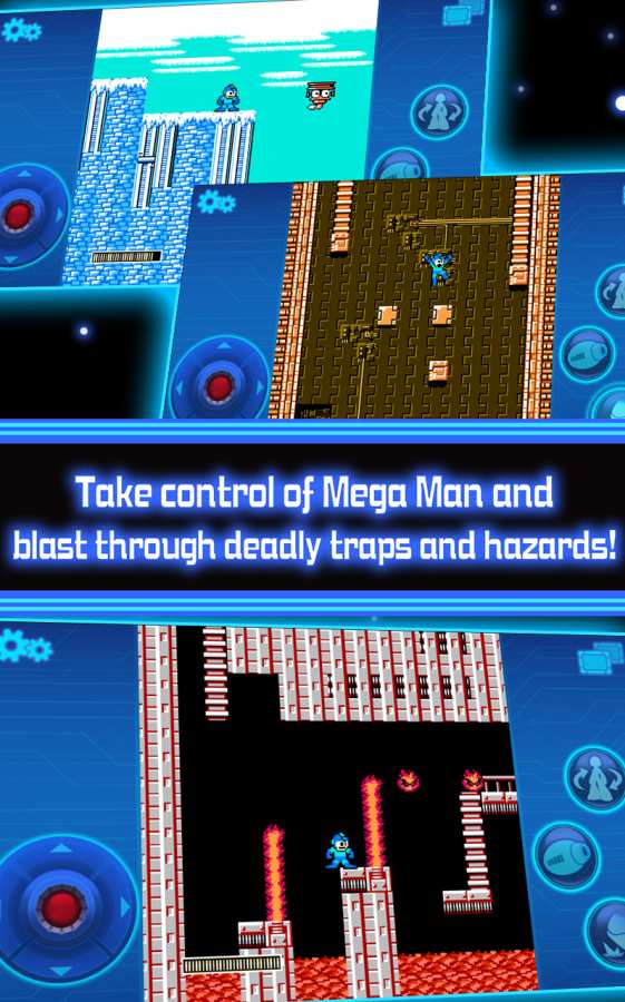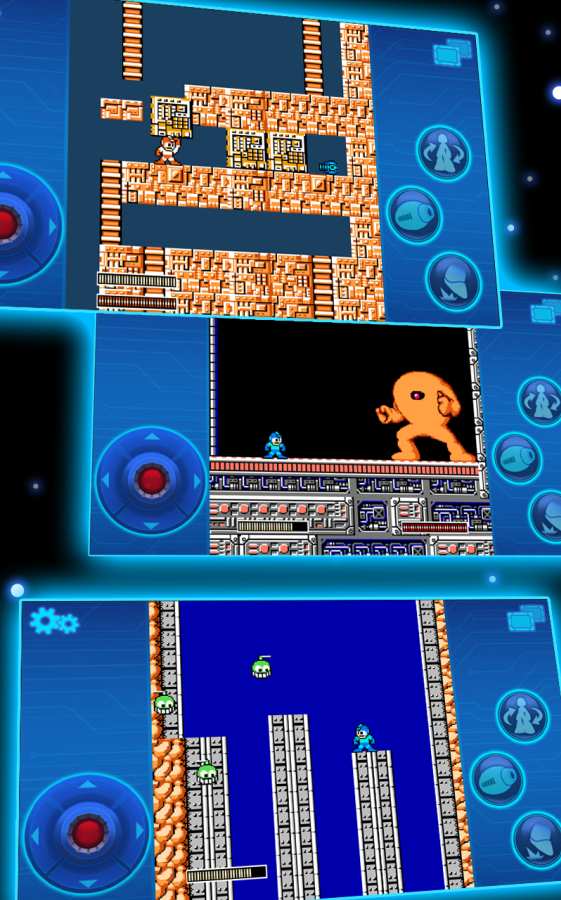 游戏画面简单朴素,游戏在玩法上将保留原作打倒BOSS获得特殊武器的系统,并且为了贴合虚拟按键的操作,让你在游戏中更爽的体验
