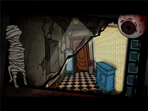 1、不同于目前脱逃类游戏的黑暗恐怖的手绘画风