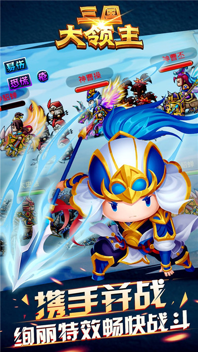 《三国大领主》是一个Q版风格建立在一个以三国世界观下的大型沙盒战争策略游戏。玩家将扮演三国时期的城主,生产战略资源、笼络名士猛将、征召百万雄兵参与到十三州的领土争夺中。这是一个以“三国”为背景的战争沙盘策略游戏,画风上承载了Q萌的武将元素,玩法上增加了独特的国战,同盟等。而它的主要特点是军团作战,强调布阵策略和临场技能释放,让你瞬间变身成为一位立马横刀的元帅的感觉,秒杀以往枯燥乏味的自动战斗模式。