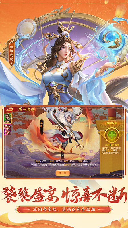 游戏有着宏大的世界观,三国名将在这里任你挑选,三国杀名将传修改器版还有无限元宝任你挥霍!让你在这里无拘无束的体验游戏内容