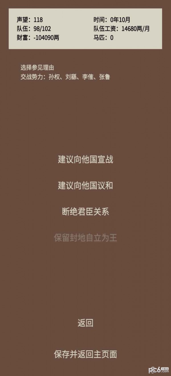 蛋糕三国内容丰富的三国文字游戏,可以说是骑马与砍杀三国无双的本,能够轻轻松松的过一生,也能参军集结自己的部队,加入到某一势力,甚至自己开创新的势力。