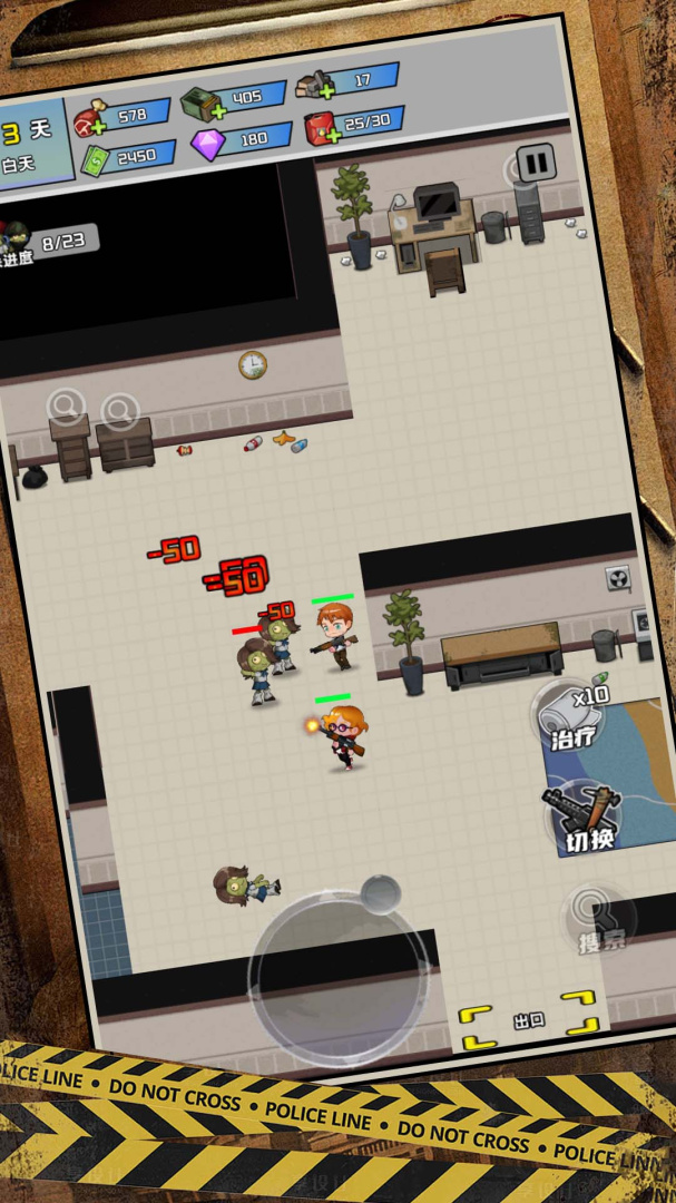 这款游戏画风非常卡通,各个萌萌哒小僵尸等你对抗,解救被困的幸存者,解开逃生通道,最终逃离僵尸镇