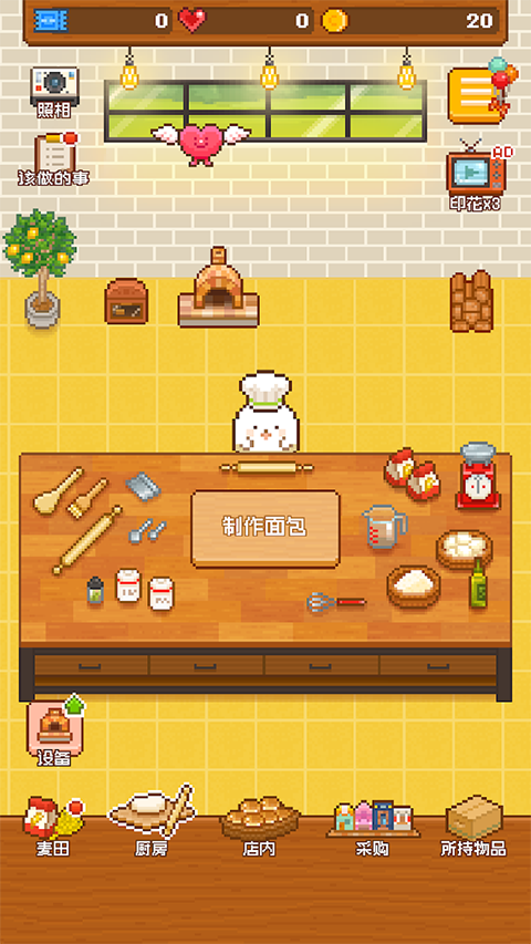 这是一款休闲像素的模拟经营制作手游,亲手种植小麦来制作各种国家和地区的特色配方的面包,通过经营店铺来解锁更多的材料,收集多种多样的装饰品,开张小镇最出色的面包店。