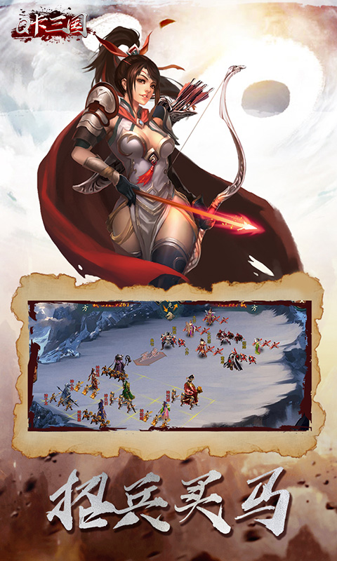 三国为题材的手机网游,卡牌为游戏内容,加入了策略玩法,精彩的游戏内容,丰富的卡牌可以招募,同时独创战棋,考验玩家的思维和智慧,玩家手动调兵遣将与敌人或者其它玩法对战吧