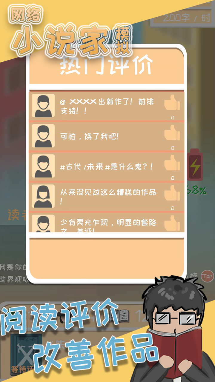 3、在这里合理的去规划你的生活,各种精彩的剧情故事,玩家需要及时的更新,维持小说的热度,从而去吸引更多的读者