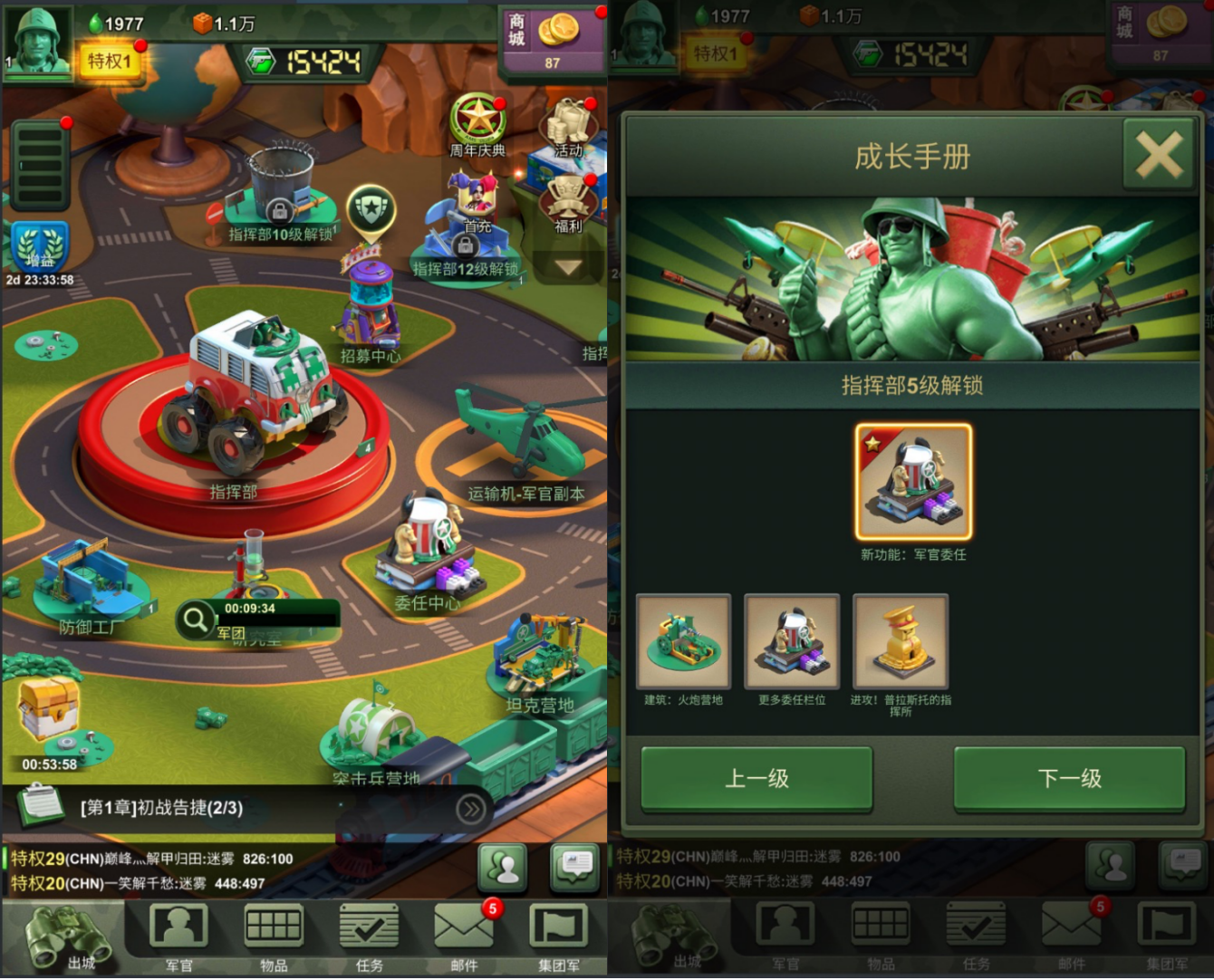 (tips:点击指挥部——成长手册,你可以提前查看每个等级可以解锁的新内容)