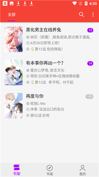 3、添加漫画到书架,不仅可以随时阅读,更新后还会及时的提醒