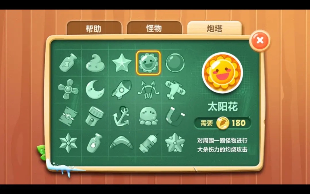 单体伤害,满级后使其攻击范围内所有炮塔的攻速稍稍增加。作为辅助炮塔还是不错的,毕竟价格最便宜,而且还融合了一代水晶的效果,虽然范围稍小但用处并不小。