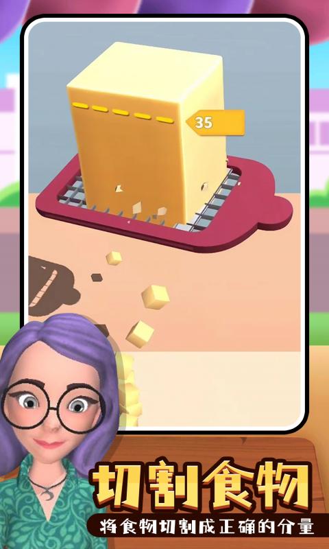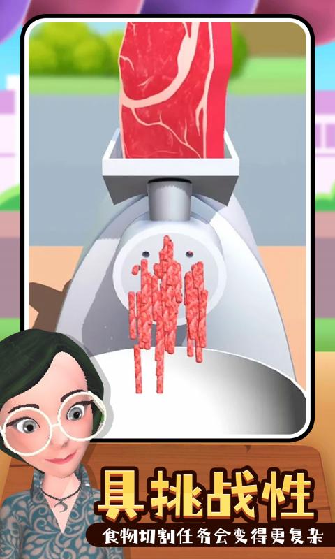 这是一款切食物的休闲游戏,使用各种不同的工具来切食物,将不同的食材且成薄片让来往的顾客能够满意,游戏轻松简单,大量的食材不同的关卡可以挑战。