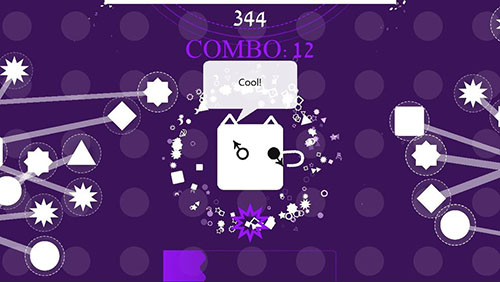 根据中央的镂空图形,点击左右伸出来的相同的图形即可,下方进度条填满后会进入fever状态,达成更多连击获得更多分数吧~