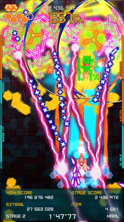 2. 游戏采用2D垂直弹幕设计,还有各种酷炫的射击特效,带给玩家一场精彩绝伦的视觉盛宴。