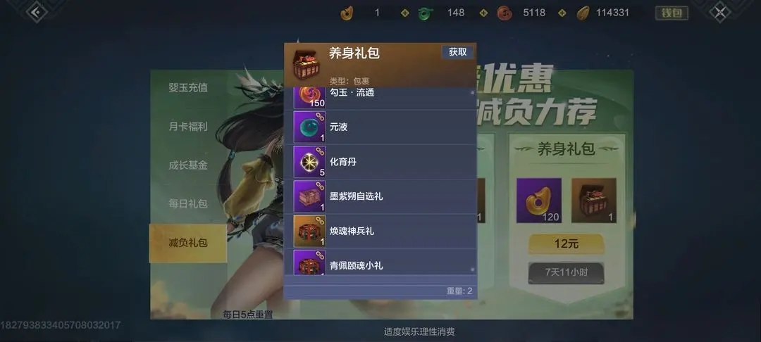 每周开启获得 120婴玉 以及篆星灵石和化育丹二选一,建议选篆星灵石,贵且消耗较大