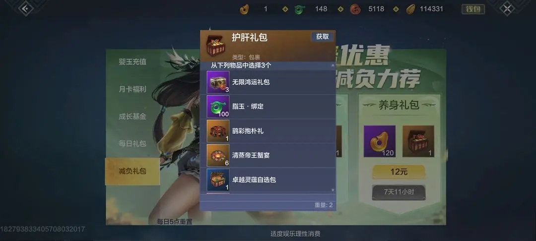 礼包选择 无限鸿运礼包 100脂玉 卓越灵蕴自选包(有脂玉的礼包优先选脂玉,灵蕴根据自己情况来决定选什么)