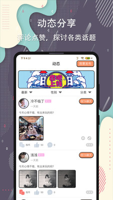 2、有趣的动态分享,很多不同的动态给到各位朋友,大家能够直接在线点赞评论,一起探讨当下流行的各种有趣话题哦。