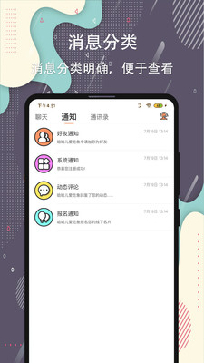 1、消息分类很明确,这里为大家提供了便于查看的消息分类,你能够看到设看过你,评论对话,私信聊天,名片等等。