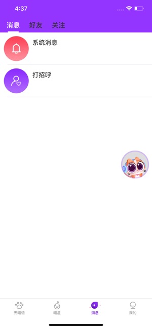 天喵星APP是款功能强大的语音聊天交友软件。它可以为年轻人提供更多认识同龄人的机会,里面有更多小哥哥和小姐姐等你来撩哦,操作简单,方便快捷,非常好用