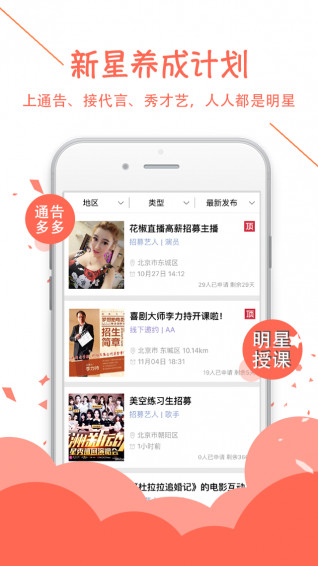 如果您是商家用户可以通过抓马App一分钟分布通告,而平台会24小时之内为您找到合适的人选。如果您是梦想成为明星的年轻人,参与抓马App推出的造星计划,即可轻松实现当明星的梦想。目前抓马App已经帮助1000名具有明星梦的年轻人找到合适的演出机会,这个数据有没有很亮眼!