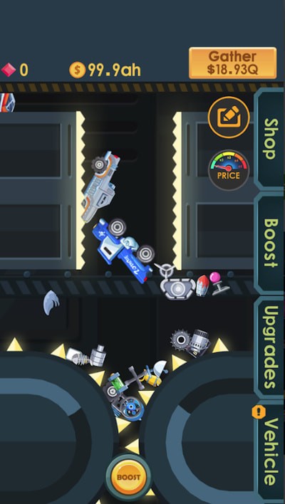赚钱之后可以升级你的粉碎机和齿轮,可以更多的处理堆放的车辆