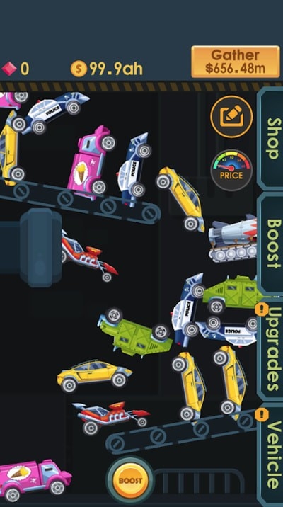 直接的点击屏幕,加快工厂机器的速度并碾碎所有车辆