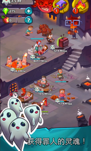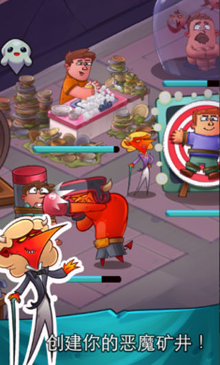 在老板的监督下,你须要建立恶魔矿井,通过各种残忍的手段收集罪人的灵魂,比如鞭打、水煮、喂食、跑步……不同的工种生产的效率也不同。