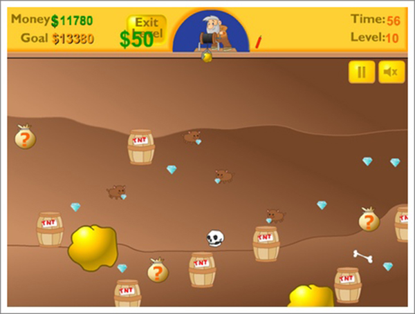Gold Miner玩法简单而有趣,操作也很简单,益智中玩家需要在规则的时间控制采矿机的钻头降落,瞄准各种钻石和宝物,挑战更高的分数