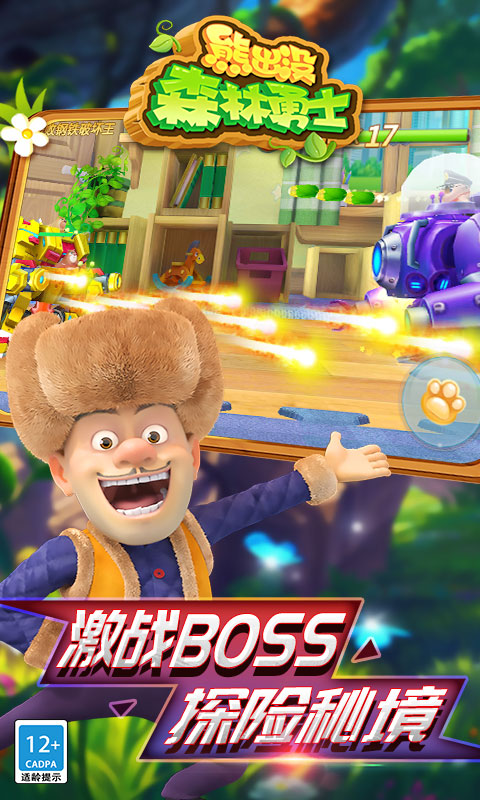 3、打造了最为刺激的动作玩法,在游戏中玩家们能够自由的控制熊大熊二专门闯关冒险,非常的刺激好玩,游戏难度不是很大,玩家可以很容易就能上手。