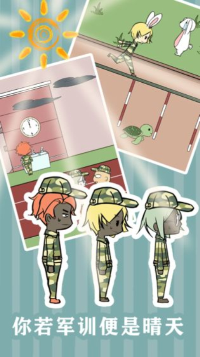 军训大作战是一款脑洞大开的休闲解谜游戏。什么,开始军训了?一遇军训半条命,拜萧求雨行不行,匍匐吃鸡抢饭忙,攀岩爬梯争澡堂,你若军训便是晴天。快帮我想想办法,躲过严酷的军训吧!