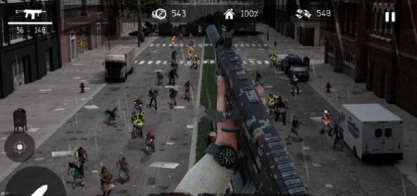 3、饥饿的僵尸四处寻找人群,看准就杀不给它机会,全部打尽。