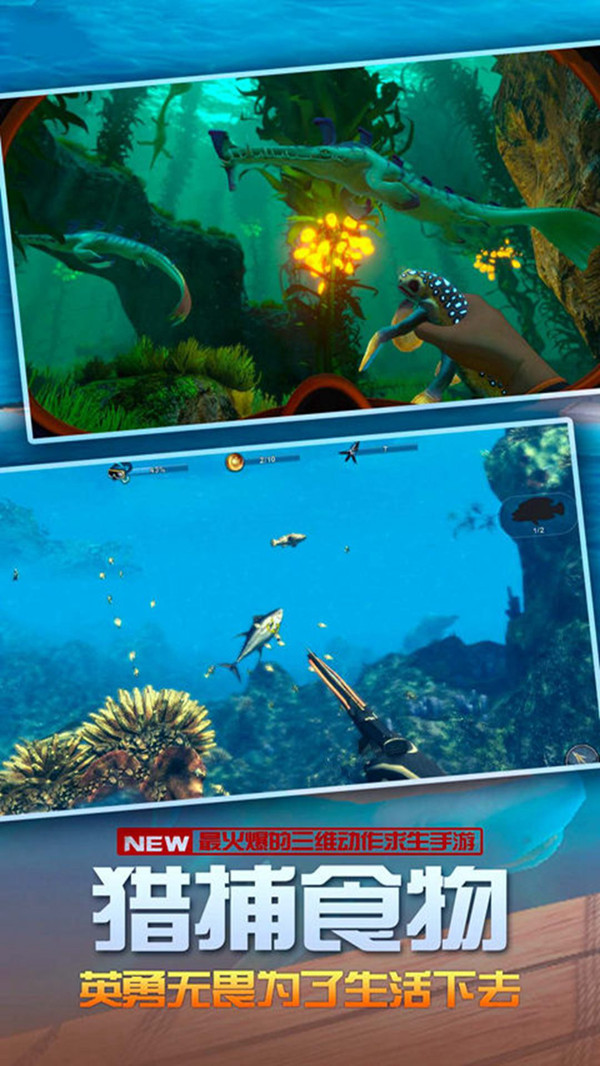 •工艺冒险,与野生动物像狮子,熊,狼,鹿,鲨鱼战斗,找到工具。