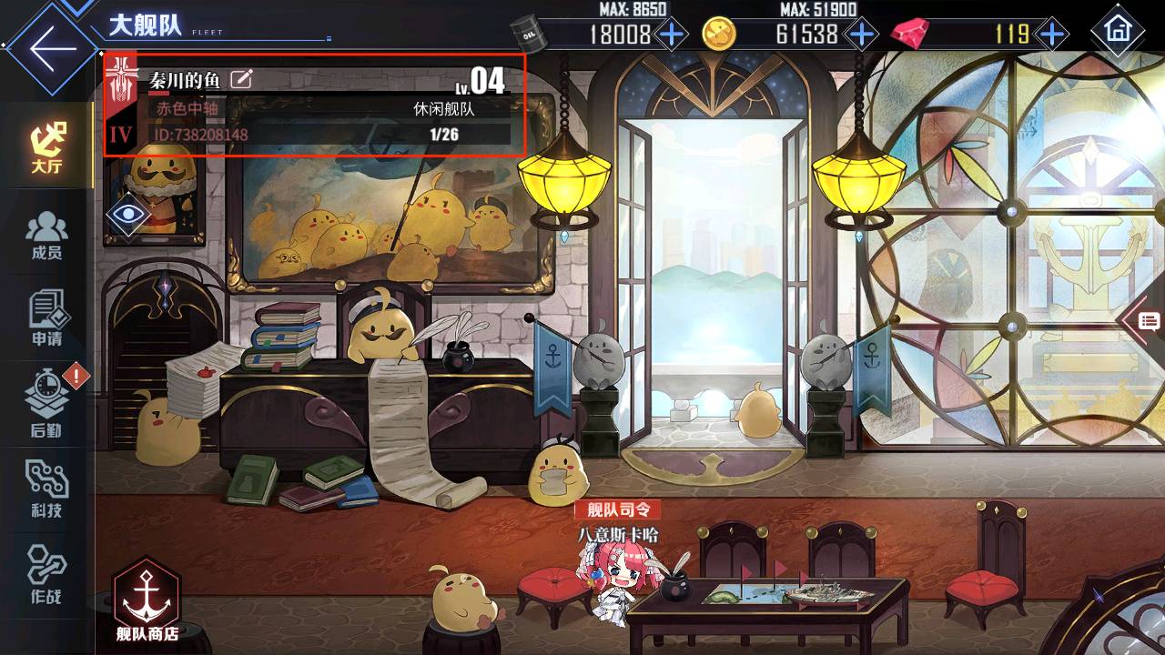 舰队司令、副司令可以在后勤处发布大舰队任务,购买大舰队补给。所有成员均可在后勤处领取并执行大舰队任务,提交军需筹备任务,以及领取大舰队补给。大舰队任务是由大舰队全体成员共同执行的任务,完成任务可获得道具 舰队资金大舰队资金奖励。