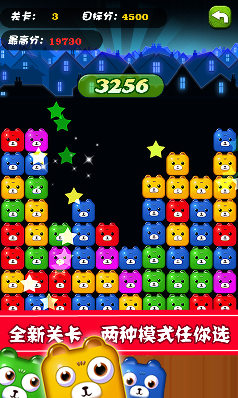 游戏以不同颜色的熊为主要题材,经典的消除玩法,精彩趣味的关卡设计,带你体验最刺激最好玩的消除游戏