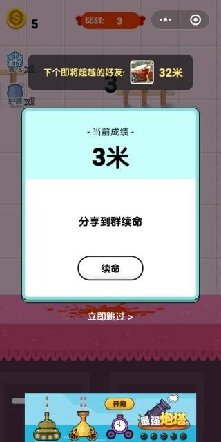 2、分享、看广告复活:
