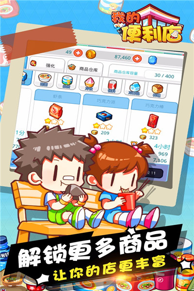 《我的便利店》是一款超级可爱的模拟经营类游戏,萌系卡通画面风格,色彩绚丽的人物设定,带给你超萌视觉享受,玩游戏就如同看动画,一景一物处处萌动你心。就像经营真实的便利店,但又不同于传统模拟经营类游戏,可通过强化商品来提高销售吸引力,又可定制店铺特色商品,培养回头客,还有增强互动性的好友模式,多种玩法任你选。