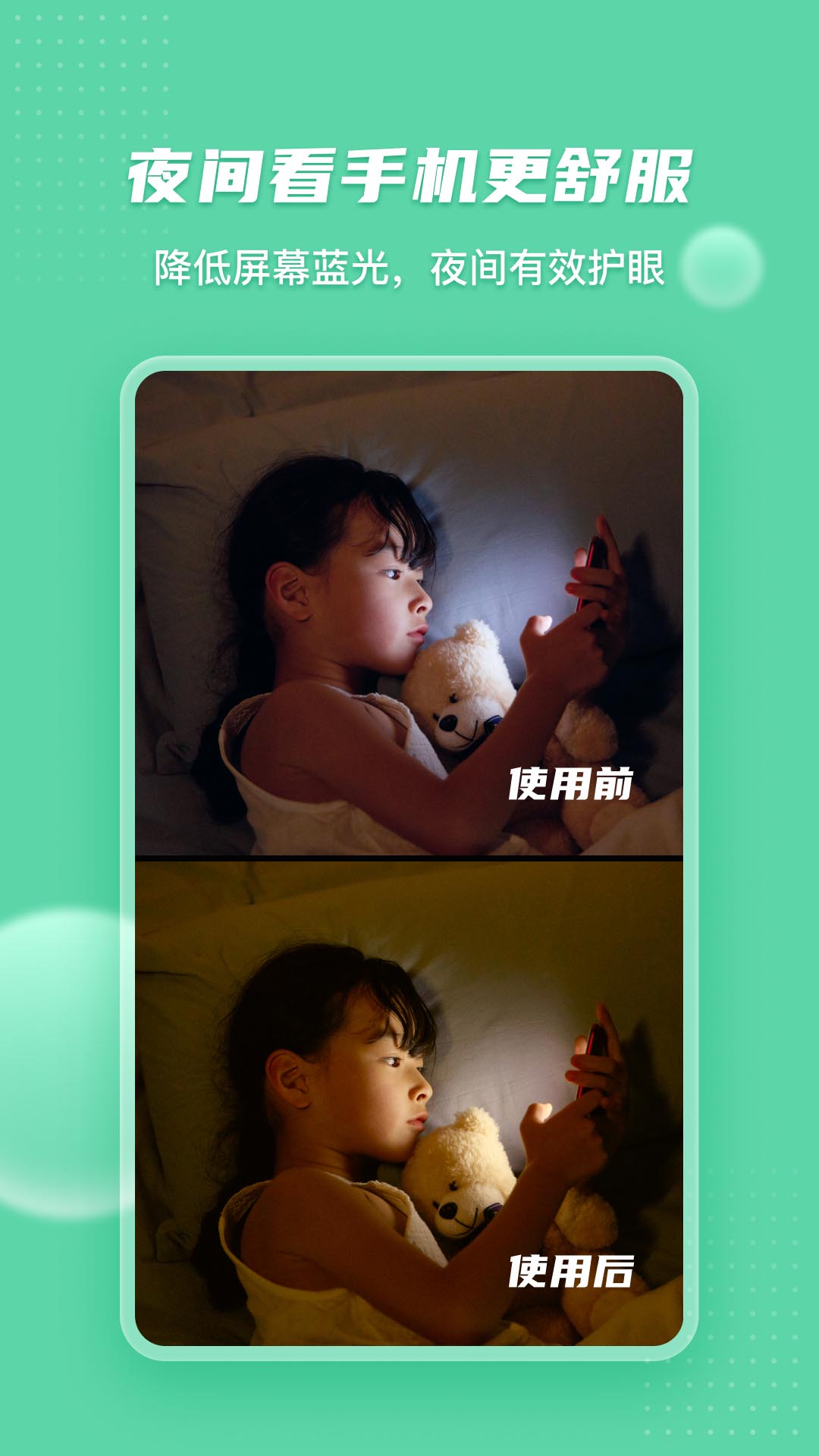 该软件功能非常强大,可以自调节手机屏幕的光线,有助于对眼睛的保护,还有各种特色功能,非常方便实用哦