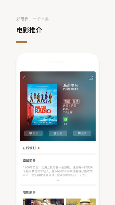 1、电影推介:不管是院线,还是汁源,好电影一个不落,重点亮点,妙趣横生,提升你的观影体验。