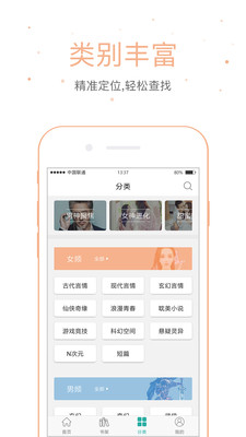 4、提供了男频、女频类别,您可以在对应的板块快速的寻找小说;