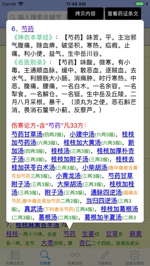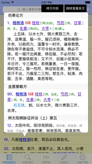 1、伤寒论查阅十分方便,每条条文点击后会弹出一个菜单,让你做笔记等操作