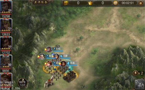 界面左侧有5个头像,分别对应出战的5名武将。武将在战场中会自动累积战意值,当战意值满之后,武将头像会变亮,此时点击头像,对应武将即可释放武将技。