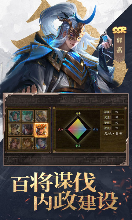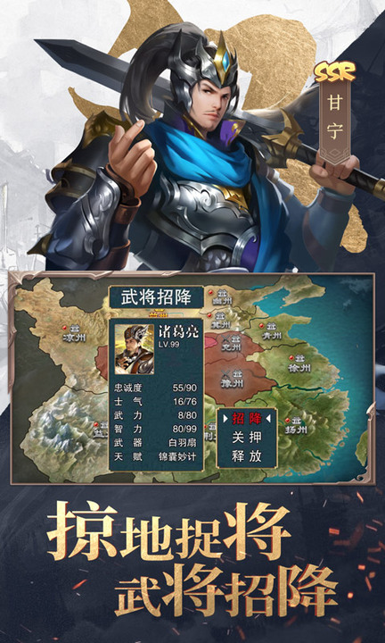 在游戏中,我们可以收集到50余名三国时期的名将,他们将为我们征战四方,争夺天下。通过升级、升级技能、升星、进阶、升级天赋、穿戴宝物、培养神器等方式,可以提升武将能力。