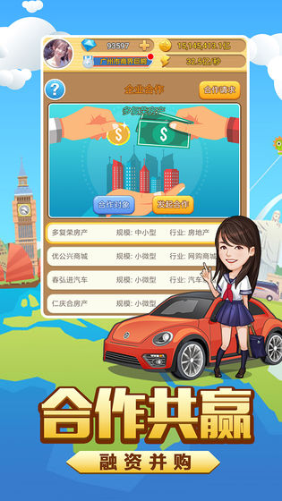 玩家进入游戏扮演一个一无所有的角色,通过不断的创业,解锁更多的技能和相关的金钱!让自己变身成为老板,不断投资,成为万人之上的富翁!每天都会发生许多有趣的事情,而身边也是美女如云,随着剧情的发展,获得更多的投资项目吧!喜欢的可以下载试试