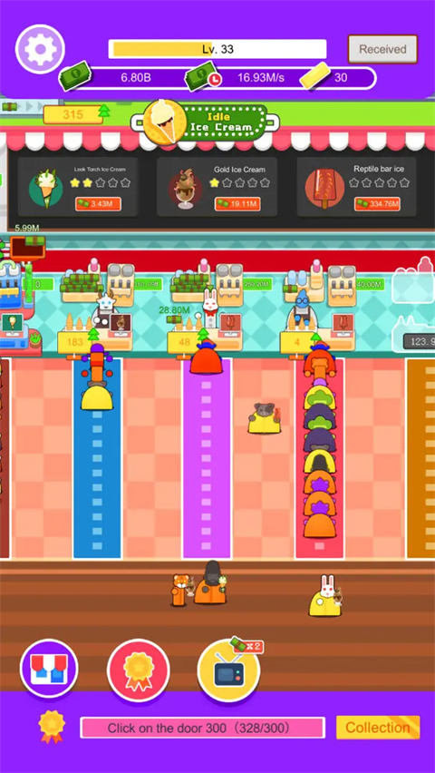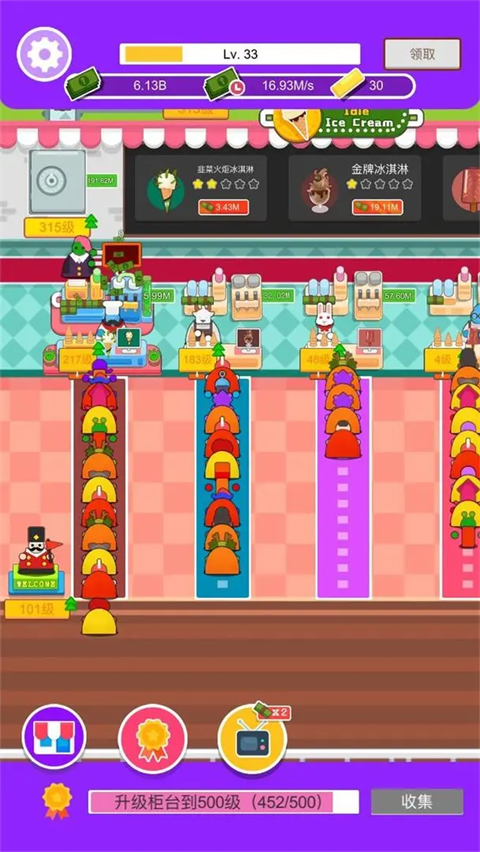 采用的是放置型的玩法,全自动化的工作流程让玩家挂机时也能够产生收益。冰淇淋的花样也非常多,操作非常简单,动动手指工作即可。