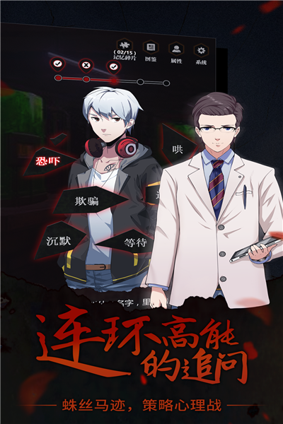剧情高潮部分会出现连续质问的局面。此时游戏会提供一系列关键词,按照正确的顺序选择好关键词,就能帮助“我”说出真正的真相,以此来反击对方。