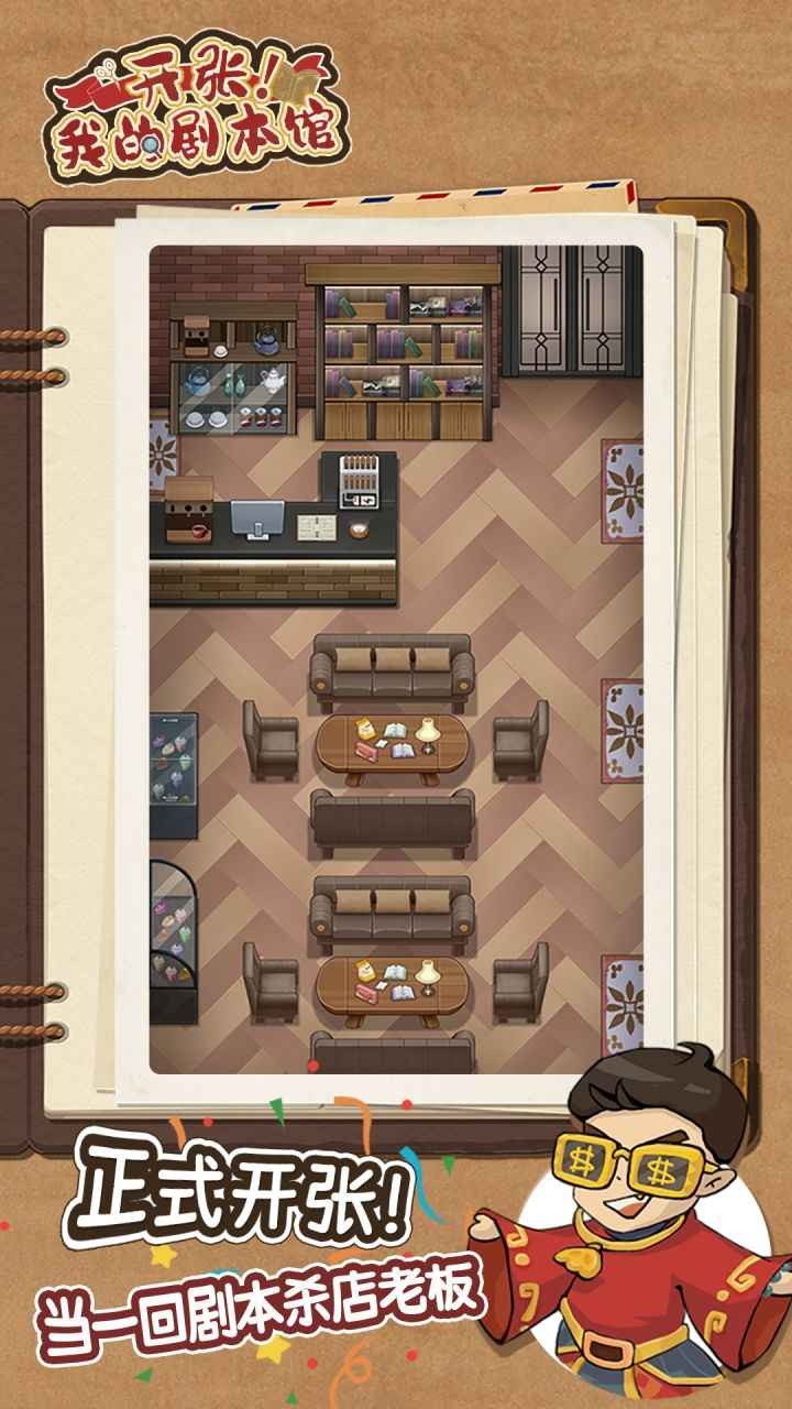 开张我的剧本馆这款模拟经营游戏采用了卡通的风格设计,玩家在游戏中将会成为一名剧本杀店的老板,玩家需要让自己的店铺生意变得更加火热起来,将店里面的剧本杀内容进行定时更新,招募更多的员工来为你打工,在积攒到了足够的经费时再去将自己的剧本杀店进行升级来扩大规模