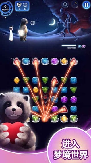 1、不一样的三消模式,画面温馨,一只穿着银鳞胸甲的熊保护小姑娘梦中不被怪物纠缠,玩惯了炫丽的三消再玩玩这个小清新式的别有一番风味。