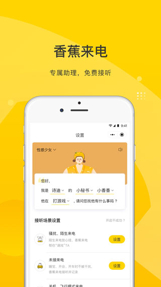 【专属助理,免费接听】:香蕉是你的专属电话助理,具备多种真人音色,在你开会/忙碌时,免费为你接听电话~