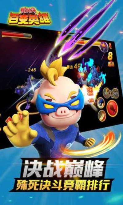 《猪猪侠之百变英雄》是一款由《猪猪侠》动画片官方授权的横版格斗单机游戏。游戏的角色、场景与故事,均源于《猪猪侠》动画片,玩家可以选择和操作五灵战士(超人强、波比、菲菲、小呆呆和猪猪侠),变身机甲战士,和魔龙王为首的黑暗势力进行战斗,保卫童话世界。