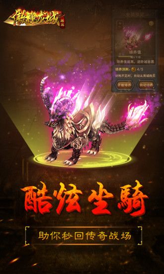 复刻传奇经典玩法,画面精美;嗜血PK、沙城争霸、酷炫坐骑、超级BOSS、材料副本,组队副本,更加真实的打斗效果,秉承经典,更具特色,与你一起杀出一个新传奇