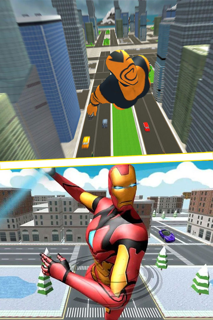 在游戏中玩家需要控制英雄穿着钢铁战衣在城市中进行飞行战斗,快速赶到混乱的地点,击败邪恶势力保护城市